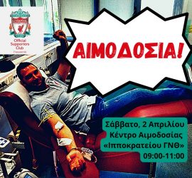 Η κοινωνική προσφορά και η αλληλεγγύη συνεχίζονται στον επίσημο σύνδεσμο φίλων Λίβερπουλ της Θεσσαλονίκης! Το OLSC Thessaloniki Branch καλεί όλα τα μέλη του, φίλες και φίλους, να έρθουν το πρωί του Σαββάτου, 2 Απριλίου, 09:00 – 11:00, στο Κέντρο Αιμοδοσίας του Ιπποκρατείου ΓΝΘ (είσοδος από την Κ. Καραμανλή)! Συνεχίζουμε να […]